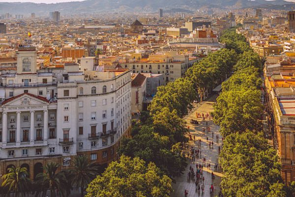 أشهر شوارع برشلونة، مليء بالمقاهي والمحلات والفنانين المتجولين.