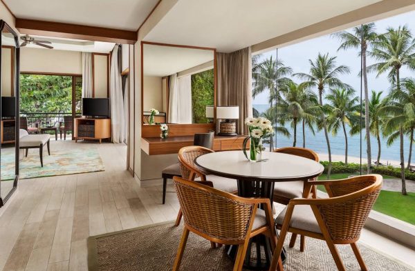 يضم غرفًا واسعة، خدمة استثنائية، مطاعم راقية، ومسبحًا خارجيًا بإطلالة رائعة.