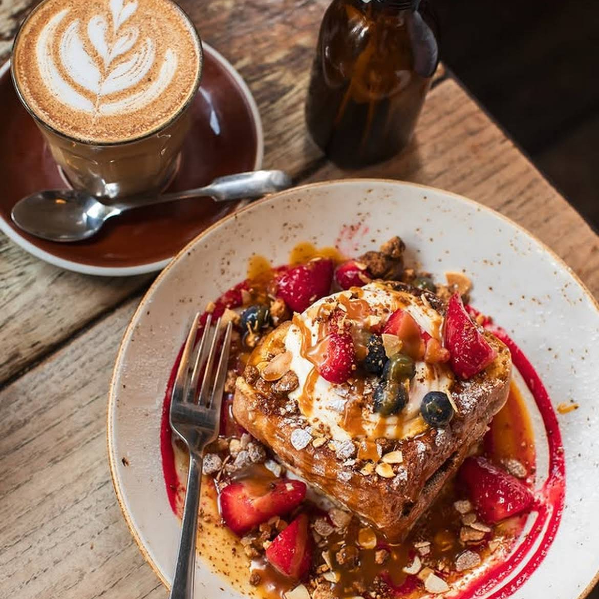 مطعم عصري يقدم فطورًا بأسلوب أسترالي مع قهوة ممتازة وأطباق مبتكرة مثل الأڤوكادو على الخبز والبان كيك، أجواء هادئة ومريحة.