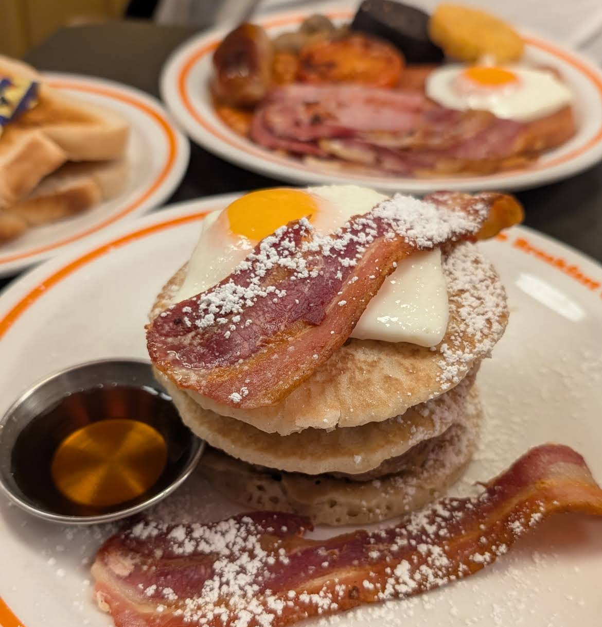 مطعم تقليدي يقدم فطور إنجليزي كامل، بيض، سجق، فطائر، مع أسعار معقولة وأجواء كلاسيكية محبوبة منذ سنوات.
