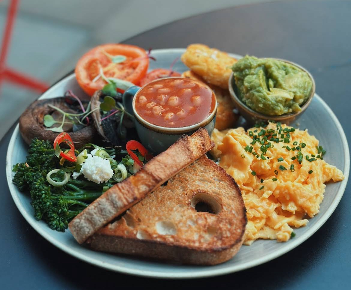 مكان عصري يقدم فطورًا إنجليزيًا متنوعًا مع خيارات صحية وقهوة مميزة، مناسب للجلسات الصباحية مع أصدقاء أو العمل.