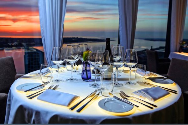 مطعم فخم في الطابق 34 من برج بيكون، بإطلالة بانورامية على المدينة والواجهة البحرية. أكل أوروبي راقي مع خدمة خمس نجوم.